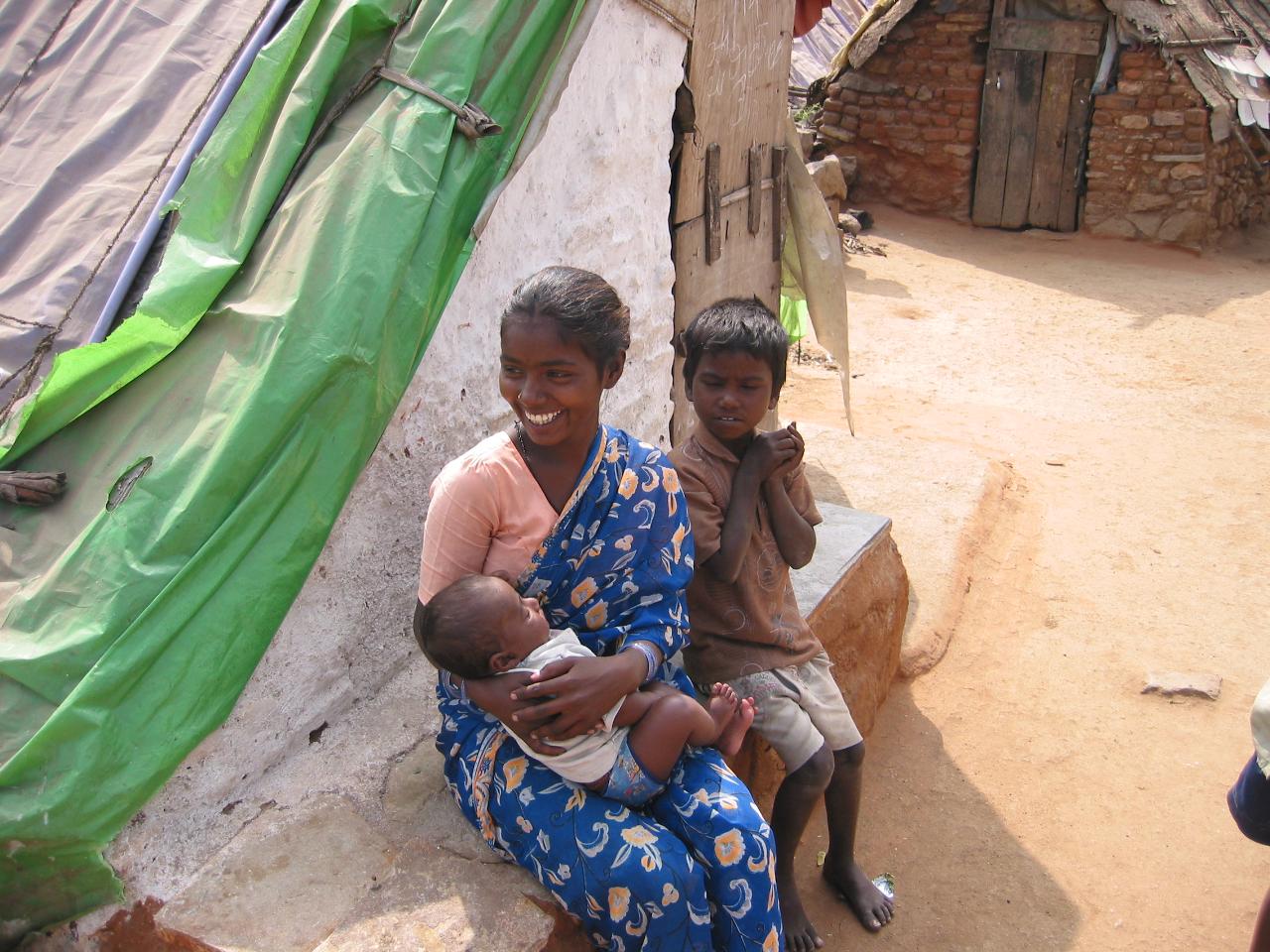 Mother and sons in a slum